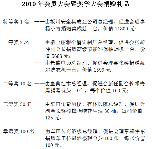 特别感谢以上热心乡贤为本次大会捐赠的丰富奖品
